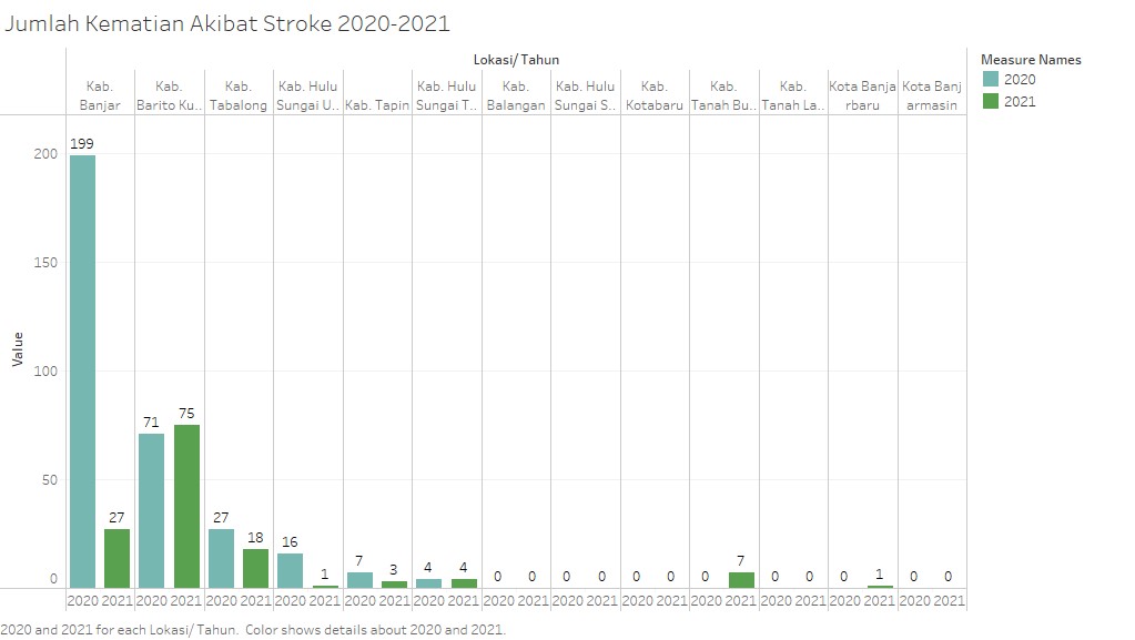 Data jumlah penderita stroke di Provinsi Kalimantan Selatan didokumentasikan melalui tabel dan format Excel, tersedia di Satu Data Indonesia. Angka-angka pada data unduhan bervariasi dan terdapat kekosongan sehingga menyulitkan interpretasi dan analisis. Untuk mengatasi masalah tersebut, peneliti menggunakan metode Eksploratory Data Analysis (EDA) dengan bantuan software Tableau. Visualisasi data mencakup perubahan kasus baru, jumlah kematian akibat stroke, perbandingan kasus baru dan lama, total penderita stroke, dan tren kasus stroke di Kalimantan Selatan (2020-2022). Meskipun terjadi penurunan kasus baru dan kematian, beberapa daerah masih mengalami kenaikan kasus baru pada 2022, menunjukkan variasi tren. Analisis lebih lanjut diperlukan untuk memahami faktor-faktor yang mempengaruhi perubahan tersebut.Downloads