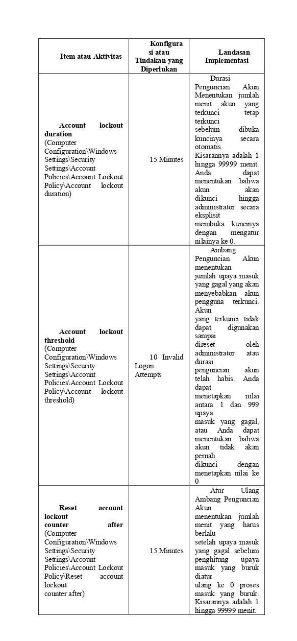 Transformasi digital pada saat ini semakin banyak diterapkan di setiap aspek kehidupan sehari-hari, seperti halnya di bidang bisnis, budaya, pendidikan dan juga cara berinteraksi antara satu orang dengan orang lainnya. Terdapat banyak sekali kemungkinan-kemungkinan potensi ancaman yang dapat muncul, seperti serangan Denial of Service Attack (DDoS), Ransomware, Deface, pencurian data dan juga beberapa serangan-serangan yang diperuntukan untuk mengambil alih akses sebuah sistem. Pada tahapan implementasi ini merupakan bagian yang digunakan untuk melakukan remediasi dari windows server yang akan ditingkatkan standar keamanannya. Adapun pada tahapan prosesnya akan dibagi menjadi 3 bagian, yaitu Vulnerability Assessment, Pembaruan OS, dan Remediasi. Metode yang digunakan pada penelitian kali ini meliputi tahapan assessment, pembuatan SOP security hardening, pembuatan script security hardening, implementasi yang terdiri (vulnerability assessment, remediasi dan pembaruan operating system). Langkah terakhir adalah mengenai reporting hasil proses security hardening yang telah dilakukan. Berdasarkan hasil yang didapatkan, kerentanan yang ada di server tersebut sudah jauh lebih baik. Dimana saat ini menyisakan kerentanan dengan kategori medium sebanyak 2. Namun hal tersebut masih dalam kategori aman, karena kerentanan tersebut disebabkan oleh konfigurasi sertificate yang perlu dilakukan perbaikan oleh tim service owner dan tim infrastruktur.Downloads